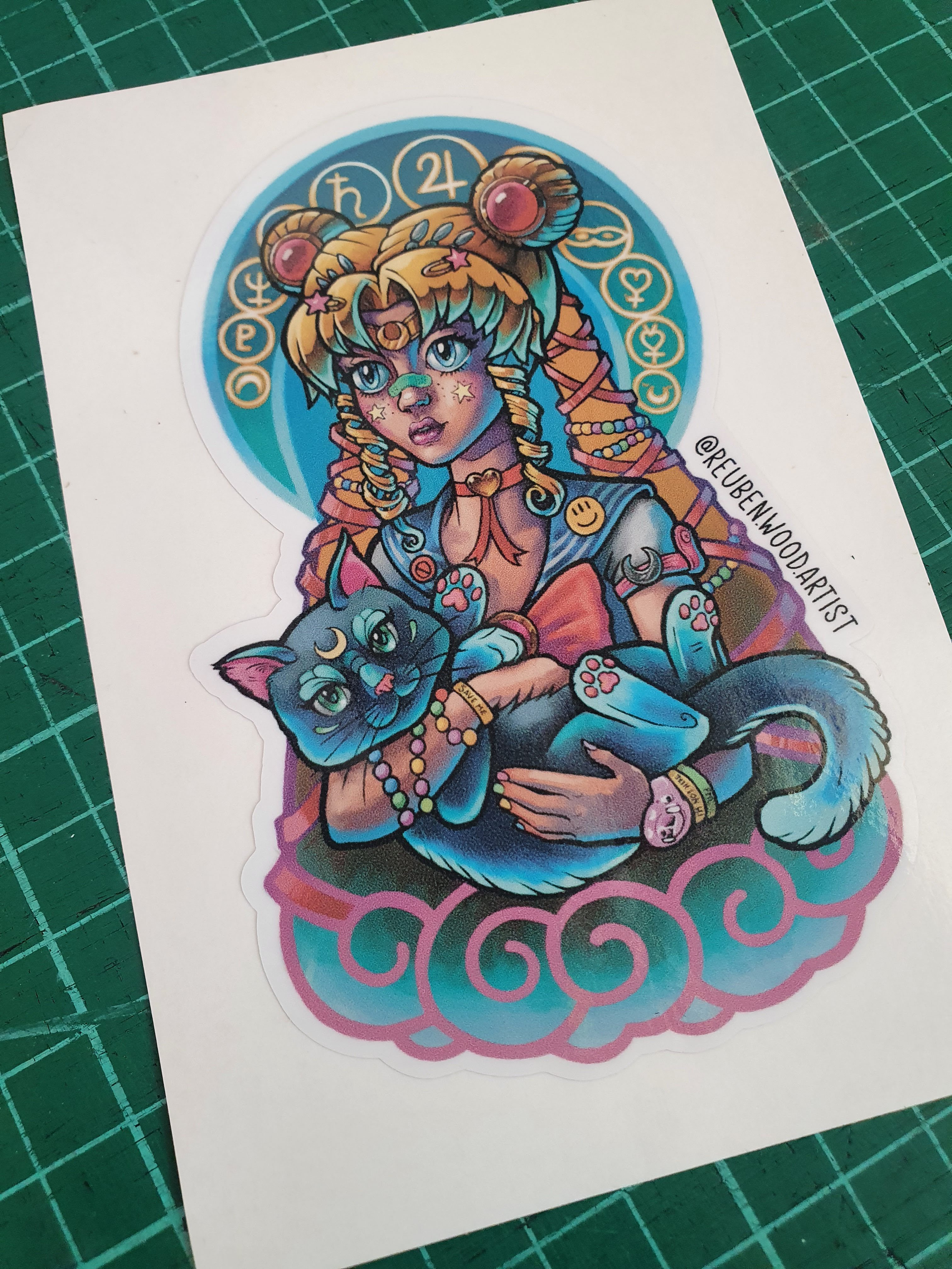 Sailor Moon artwork by Reuben Wood printed full colour on digital print kiss cut sticker